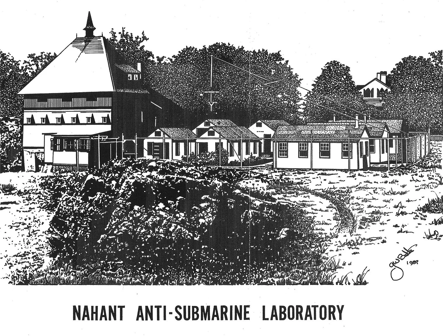 “The Nahant Antisubmarine Laboratory (NAL) was built off Swallow Cave Road on the estates of General Charles J. Paine, Mrs. Knivet W. Sears, and Miss Clara Sears. (Property now owned by the Ralph Lowell family.) ”